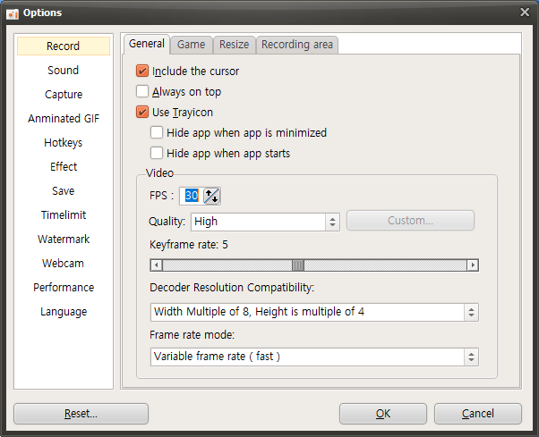 If your system becomes slow during recording or the mouse movement stutters, this is likely related to high system resource usage.