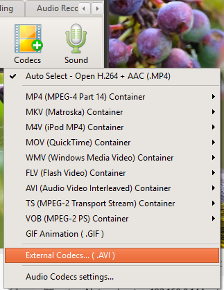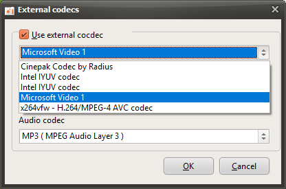 Setting the Codec - Selecting an External Video Codec (VFW)