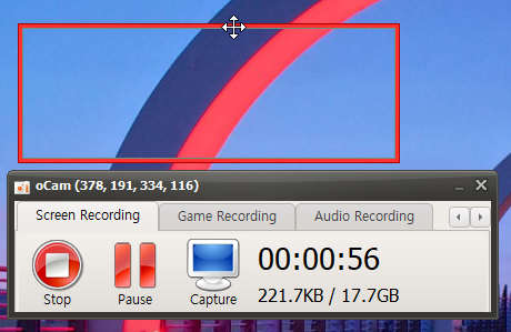 oCam provides the ability to adjust the recording area flexibly even while recording.