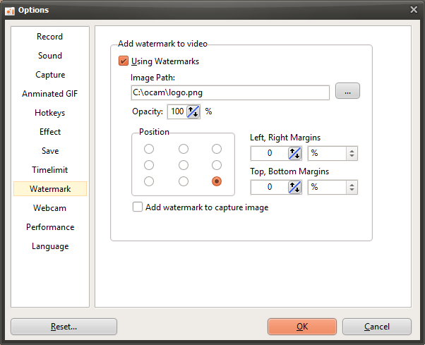 Adding a watermark to videos recorded with oCam helps clearly indicate the source of the video and reduce the chance of unauthorized use by others. A watermark is a feature that inserts a specific image into the video, such as a logo, text, or icon, to identify the creator or ownership. This is effective for protecting the uniqueness of the video and promoting your brand.