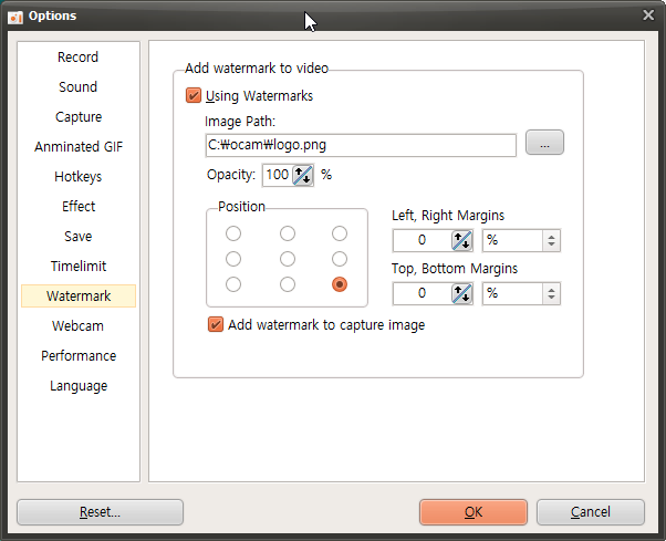 If you check Use Watermark, the image set in the image path will be displayed in the recorded video.