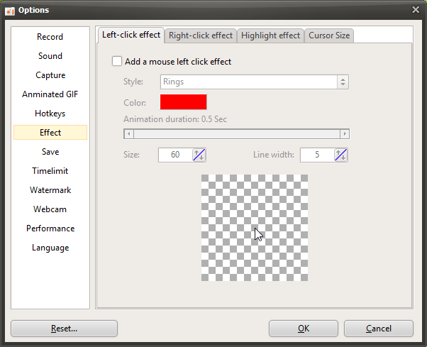 oCam Advanced Settings - Mouse Cursor Effects - Click Effects