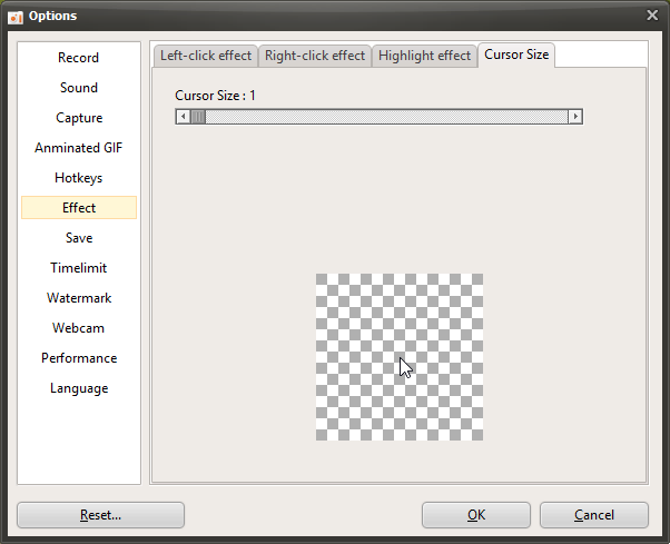 oCam Advanced Settings - Mouse Cursor Effects - Cursor Size