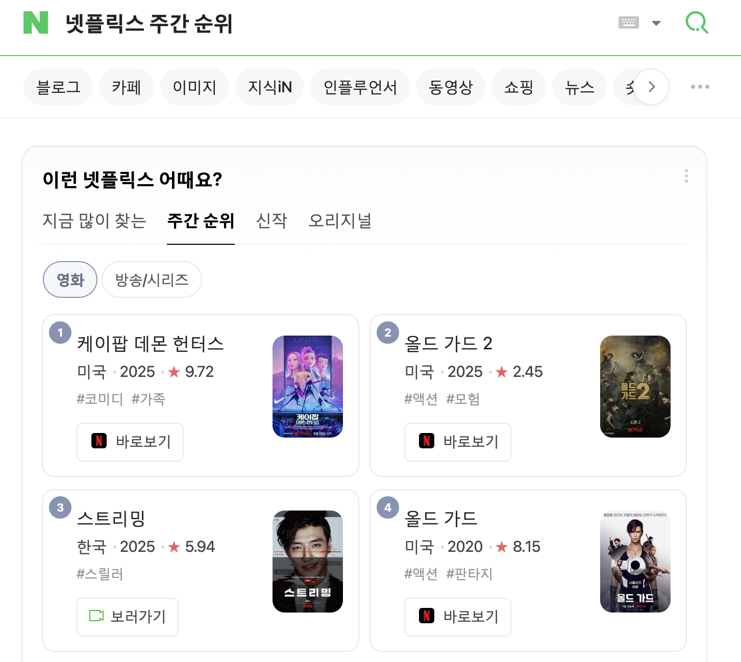 OTT별로 주간순위라고 검색하면 되는데, 링크를 정리 해둘께요.