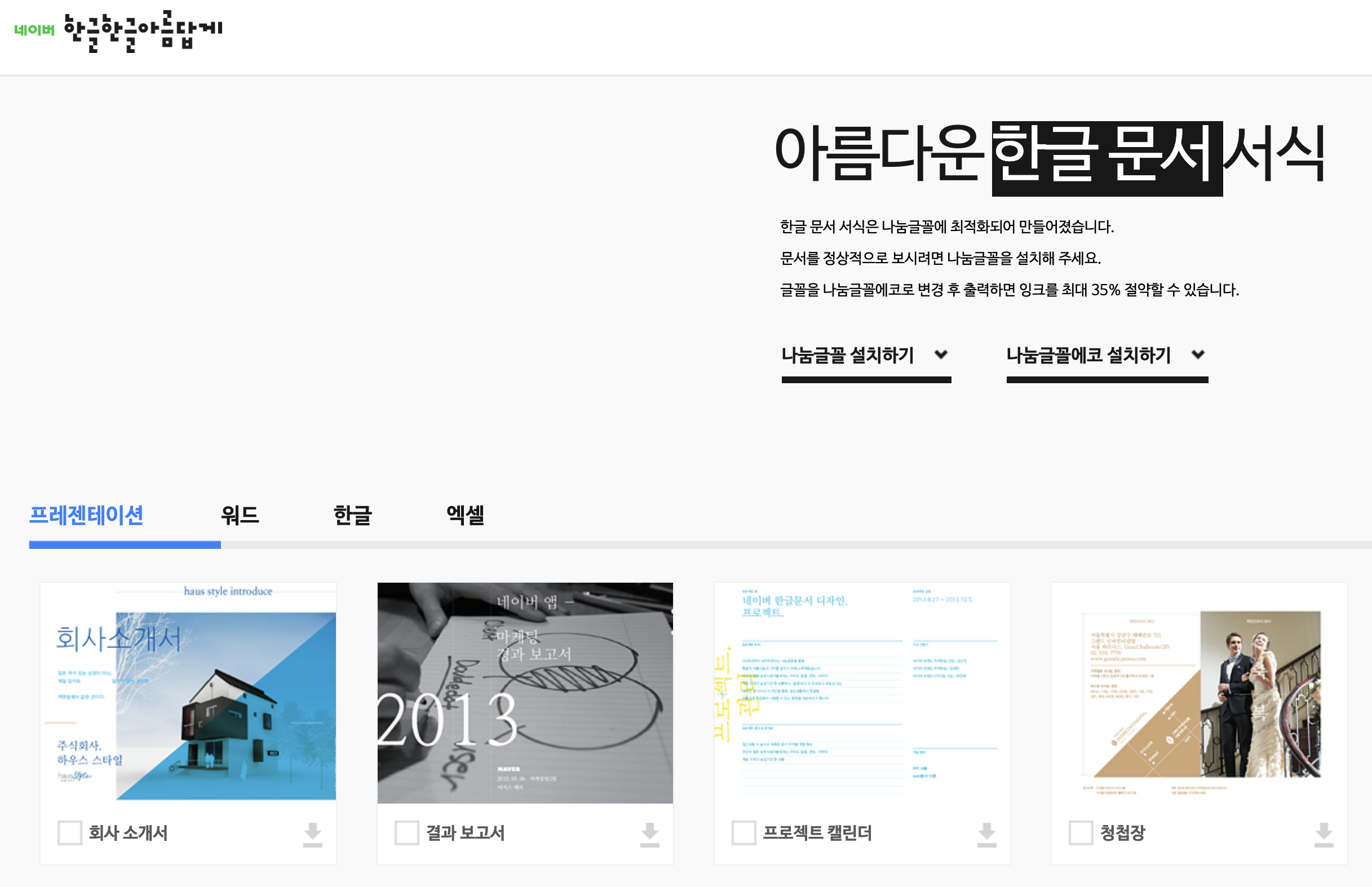 네이버 문서양식(한글/워드/엑셀/프레젠테이션) 무료로 다운받기