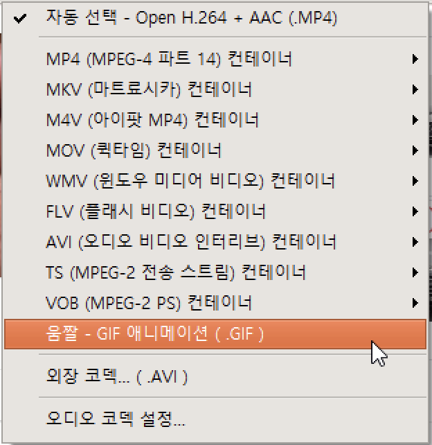또한 움짤을 만들때 쓰는 GIF 애니메이션을 선택하시면, 움직이는 사진을 만들 수 있습니다.