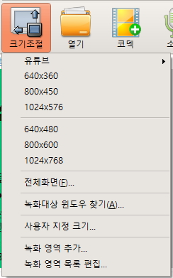 오캠(oCam)의 메인 화면에는 다양한 기능을 직관적으로 사용할 수 있도록 설계된 여러 버튼이 포함되어 있으며, 그중 "크기조절" 버튼은 녹화 영역을 사용자 맞춤으로 설정할 수 있는 핵심 기능 중 하나입니다. 이 버튼을 클릭하면, 깔끔하고 사용자 친화적인 팝업 메뉴가 표시됩니다. 이 메뉴는 녹화 영역의 크기와 해상도를 유연하게 조정할 수 있는 다양한 옵션을 제공하여, 초보자부터 IT 전문가까지 자신의 작업 환경에 최적화된 설정을 손쉽게 구성할 수 있도록 돕습니다.