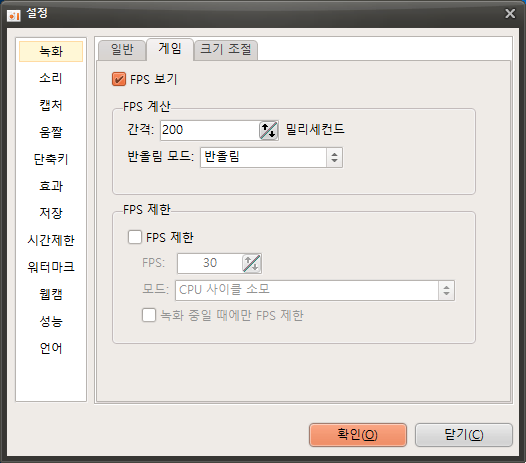 오캠 세부설정하기 - 녹화 - 게임탭