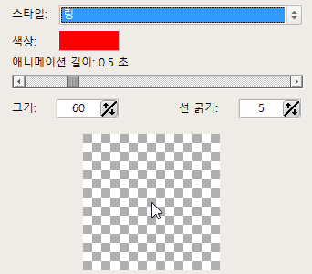 색상은 클릭 효과에서 사용하는 색상이며, 무작위 색상에서는 설정한 색상이 무시됩니다.