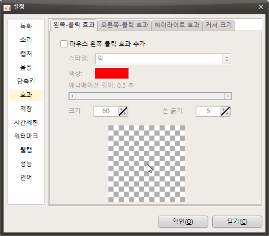오캠 세부설정하기 - 마우스 커서 효과 - 클릭 효과