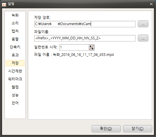 머릿글자는 녹화를 하면 녹화, 녹음을 하면 녹음, 캡처를 하면 캡처로 대체되며, #은 일련번호로 대체됩니다.