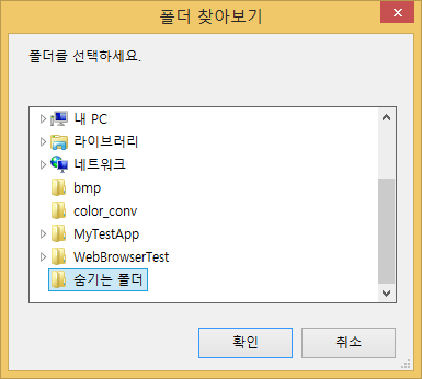 폴더 찾아보기 창이 뜨면 "숨기려는 폴더를 선택"하고 "확인" 버튼을 클릭합니다.