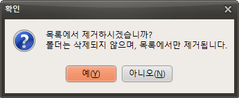 "예" 버튼을 누르면 목록에서 제거되며, 실제 폴더는 삭제되지 않습니다.