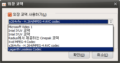 만약 무손실로 녹화하려면 Lagarith Lossless Video 외장 코덱을 사용하시면 됩니다.