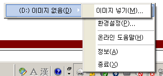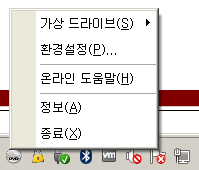 트레이 아이콘에서 마우스 왼쪽 버튼 또는 마우스 오른쪽 버튼을 누르면 다음과 같은 팝업 메뉴가 뜨게 됩니다.