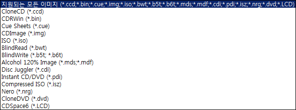 지원하는 이미지 포맷은 다음과 같습니다.