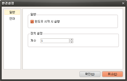 환경설정 메뉴를 통해서 윈도우 시작 시 자동실행 할 것인지 또는 가상 드라이브 개수를 설정할 수 있습니다.