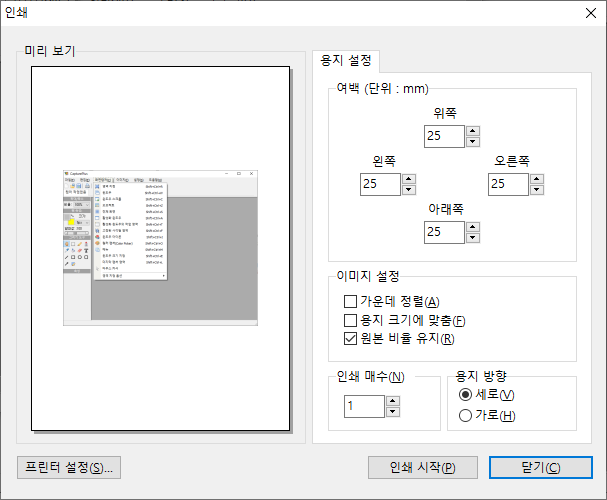 캡처한 화면을 다양한 옵션을 주어 프린터로 바로 인쇄가 가능합니다.